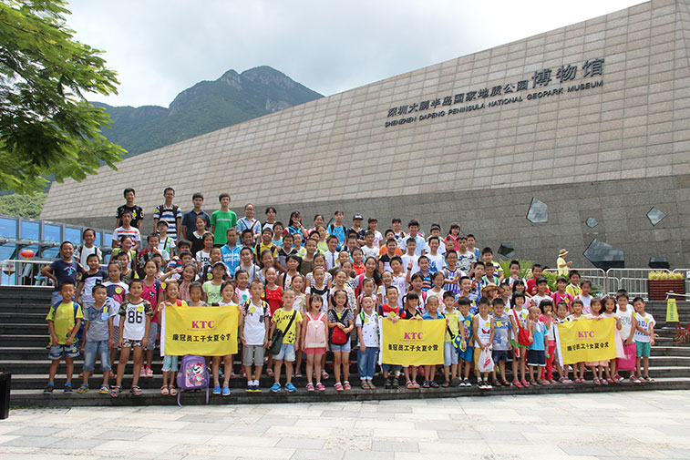 Children arrived at the first stop of the camp at 9 o’clock in the morning, Dapeng Geological Museum, located in south east middle part of Dapeng in east of Shenzhen, the museum is divided into preface hall, earth exploration hall, dapeng peninsula exhibition hall, mineral hall, city hall and the geological environment hall, also has a 3D theater, multi-function report dinosaur hall and outdoor exhibition area. Children visited each exhibition hall with the tour guide. In the museum, children got a full understanding of the composition of the soil in Shenzhen through tour explain and showcase stories , and further realized the importance of protecting our living environment; the team also enjoyed the odd treasures unearthed mine all over the country and amazed by the greatness of nature. Finally, children watched a 3D short film, learned environmental knowledge and experienced the charm of nature in a relaxed environment.