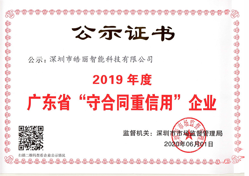 On July 15, the publicity of "2019 Guangdong Province Enterprise of Observing Contract and Valuing Credit" came to a close. Five companies under KTC Group, including Shenzhen KTC Technology Co., Ltd., Shenzhen KTC Commercial Display Technology Co., Ltd., Huizhou KTC Technology Co., Ltd., Shenzhen Horion Intelligent Technology Co., Ltd. and Shenzhen KTC Medical Solutions Co., Ltd., were made public on the list, winning the title of 2019 Guangdong Province Enterprise of Observing Contract and Valuing Credit.