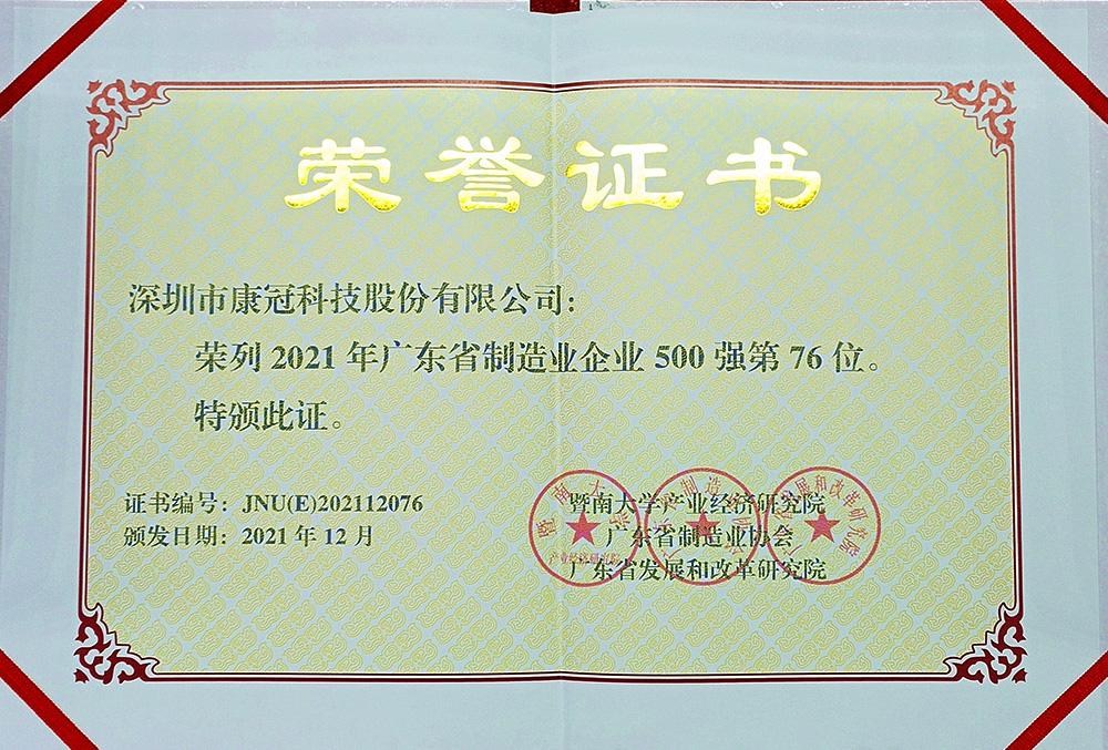 On December 30, “2021 Guangdong Manufacturing Industry Development Annual Meeting and Guangdong Top 500 Manufacturing Enterprises Summit” was held in Guangzhou Oriental Hotel. At the meeting, the organizer released the list of “2021 Guangdong Top 500 Manufacturing Enterprises”, and KTC won the title of “Guangdong Top 500 Manufacturing Enterprises” for 4 consecutive years, and ranked 76th this year, 5 places higher than last year.