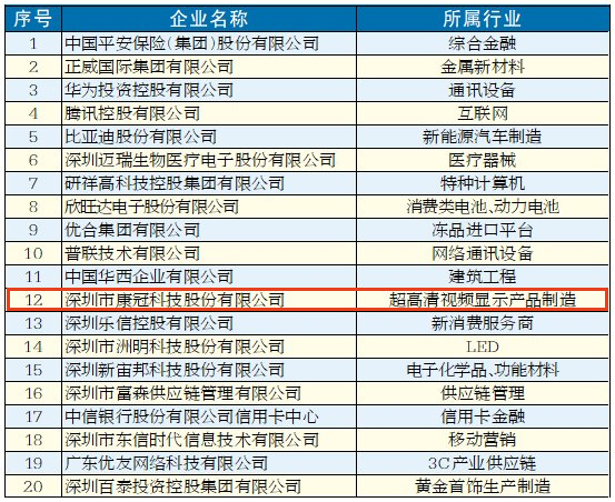 It is reported that only those influential, vocal and exemplary model enterprises in their own industry segments are included in the list of "Top 100 Shenzhen Industry Leaders". The innovation outcomes of leading corporations in each industry are fully reflected, and their great contributions to high-quality development in different industries and in Shenzhen are recognized. The innovation, driving force, contribution, influence and social responsibility are taken into consideration in corporate development assessment.