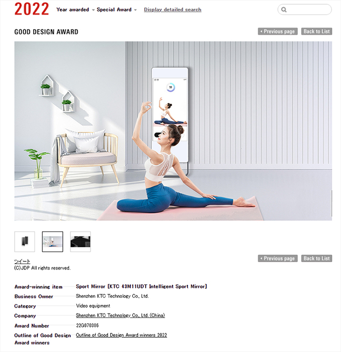 Recently, the results of the 2022 Japan G-Mark Design Award were announced, and the 43M11UDT intelligent sports mirror independently developed by KTC won the G-Mark Design Award. The theme of the 2022 Japan G-Mark Competition is "From Cross-Interaction Toward Symphony", in which 43M11UDT intelligent sports mirror stands out from 5715 products.