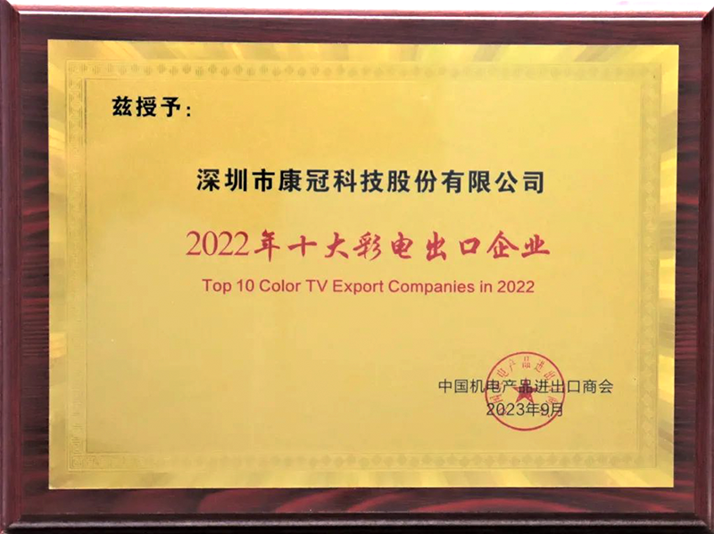 At the end of September 2023, the 9th Electronic and Household Appliance Enterprise Internationalization Summit Forum, co-sponsored by the China Chamber of Commerce for Import and Export of Machinery and Electronic Products, Zhongshan Municipal People's Government, and China Electrical Equipment Research Institute Co., Ltd., was held in Zhongshan. During the period, the China Chamber of Commerce for Import and Export of Machinery and Electronic Products released the statistical list of leading export enterprises of electronic and home appliances in 2022, and KTC was awarded the "Top 10 Color TV Export Enterprises in 2022".