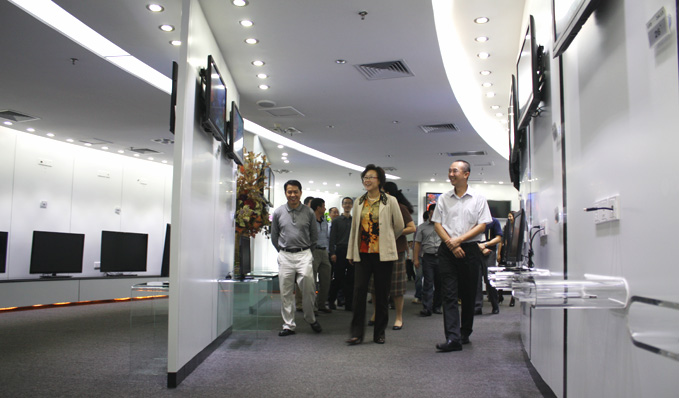 In the company of KTC's President Bin Ling and Vice President Yubin Li, deputy mayor Yihuan Wu and research group visited the exhibition hall, R&D department and production workshop. In the meantime, superintendents introduced the status of production and operation, as well as the pressing problems that KTC is facing. In the exhibition hall, deputy mayor Yihuan Wu watched 3D smart network TV by wearing 3D glasses; and also, he watched each procedure of TV producing in workshop. Deputy mayor said the Government would spare no efforts to serve and meet the urgent needs of enterprises, and promote sound and fast development of enterprises.