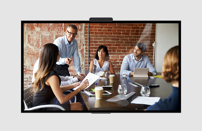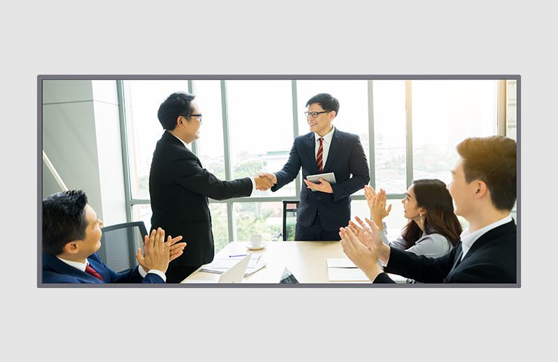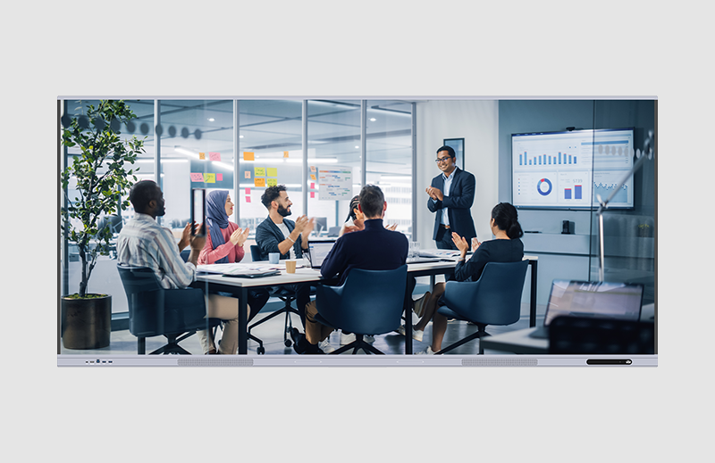 21:9 ultra-wide aspect ratio for Teams front row, ±0.5mm touch accuracy, PoE function supported.