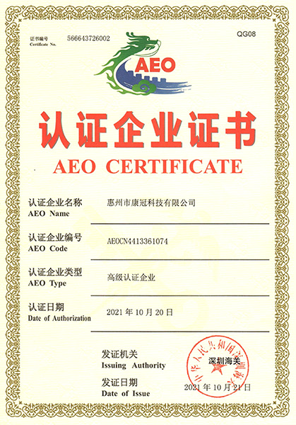 Después de que KTC Technology y KTC Commercial obtuvieran el premio como empresa certificada avanzada AEO, Huizhou KTC se convirtió en la tercera empresa certificada avanzada AEO de KTC. En el futuro, Huizhou KTC continuará fortaleciendo la gestión interna, mejorará el nivel de gestión, hará pleno uso de la cualificación de empresa certificada OEA de aduanas, fortalecerá aún más el trabajo de marketing internacional, mejorará la competitividad y la influencia internacional, y contribuirá al comercio exterior y al desarrollo económico de Huizhou.