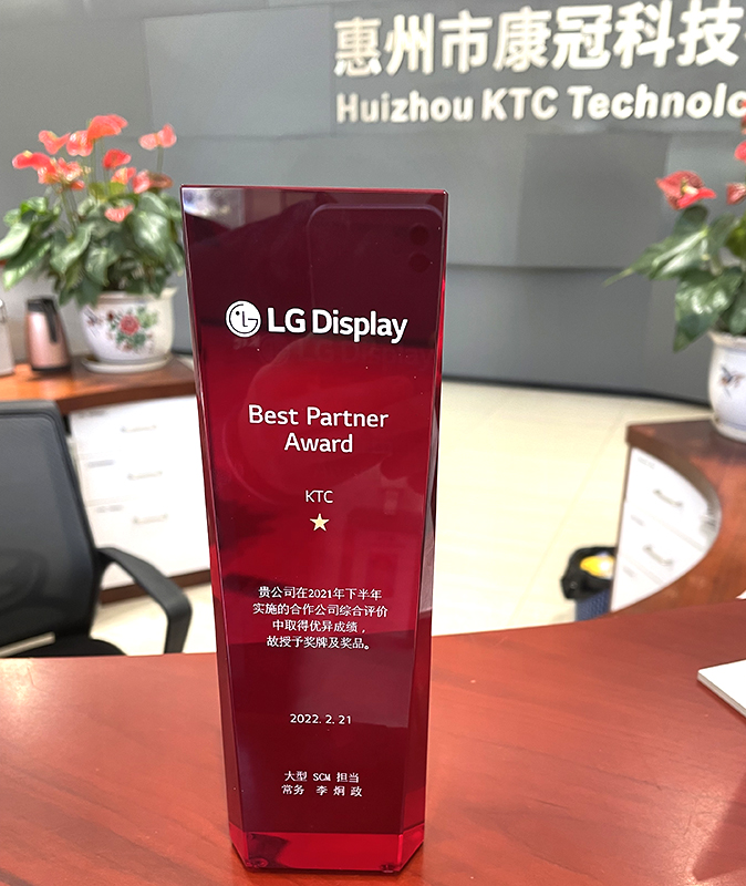 A finales de 2021, KTC fue nombrado uno de los mejores proveedores de LGD en 2021 por LG Display. KTC, como importante proveedor de productos LG, siempre se adhiere al concepto de servicio de "el cliente primero, creando inspiración", y se compromete a proporcionar productos de alta calidad y servicios personalizados.