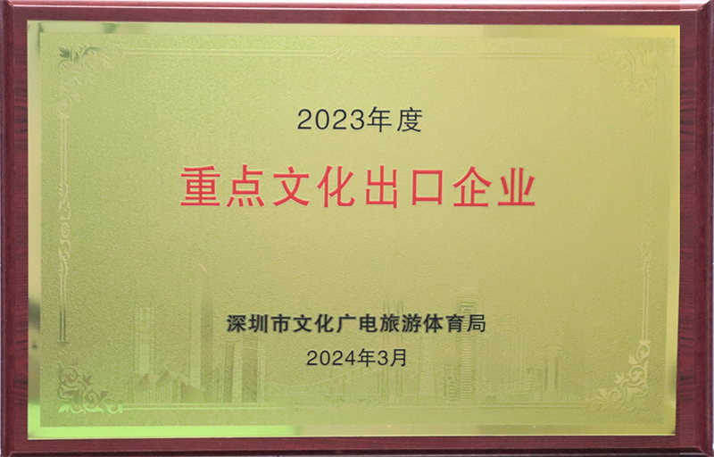 La Oficina Municipal de Cultura, Radio, Televisión, Turismo y Deportes de Shenzhen ha organizado y reconocido a las "Empresas clave de exportación cultural de Shenzhen" con el objetivo de ayudar a las empresas culturales de Shenzhen a expandirse en el mercado mundial. Esta iniciativa tiene como objetivo promover que las empresas culturales se aventuren en el extranjero y utilicen de manera efectiva el papel ejemplar e influyente de las empresas líderes.