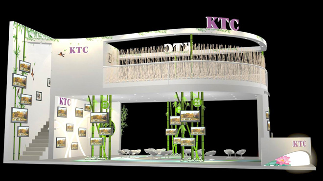 今年我司的展位依然是双层设计,同时摒弃工业化的设计风格,采用发光地台,内有流水和金鱼,周边有竹子、荷花点缀其间,清爽独特,这种设计与我司“追求高品位、高质量产品”的定位相契合,给人以耳目一新的感觉。