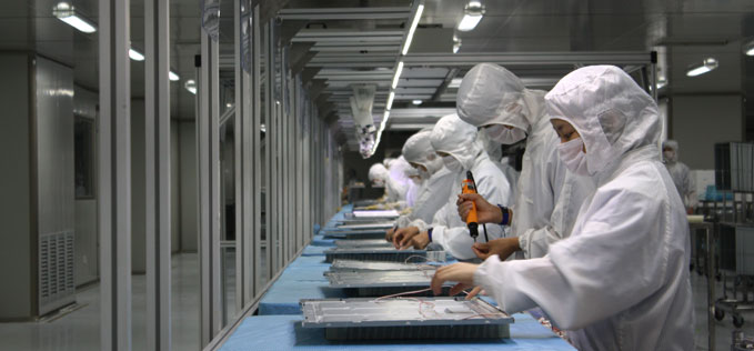 我司新开发的open cell组装屏、直下式背光液晶电视及一体机,质量稳定可靠、款式齐全、设计独特,使产品成本优势得到进一步体现,在市场上获得众多专业商家的一致赞誉,深受亚洲、美洲客户的喜爱。此次新增的LCM模组车间,即依托于新技术的导入,着眼于新颖实用的产品设计,增强该三项产品的生产能力,提高市场占有率。同时,我司大力发展LCM液晶模组项目,将原先的工作台作业提升为流水线作业,将进一步降低整机制造成本,提高整机生产效率。LCM模组车间的投入使用,增强了我司open cell组装屏、直下式背光液晶电视及一体机的市场竞争力,进一步提高我司产品的市场占有率,也为我司下一阶段的技术研发提供更多的动力。