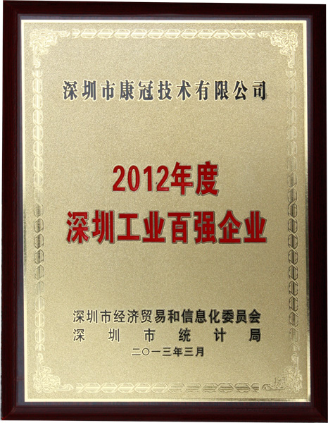 2月28日,深圳市经济贸易和信息化委员会发布2012年度深圳市工业百强企业名单,我司再次荣誉上榜。自2009年以来,我司已连续四年获得深圳工业百强企业称号。