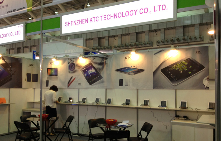 虽受全球经济影响,本届展会客户有所减少,但是我司的两个展位仍吸引了众多新老客户。展会上我司展出了11台平板全系列产品,这些平板电脑内置最新高速处理器,并搭载了时下流行的安卓操作系统,具有配置高端、外观大气、质优价廉的特点,吸引了不少客户的驻足,其中7’’、8’’小尺寸系列平板电脑表现尤佳,获得了诸多好评。