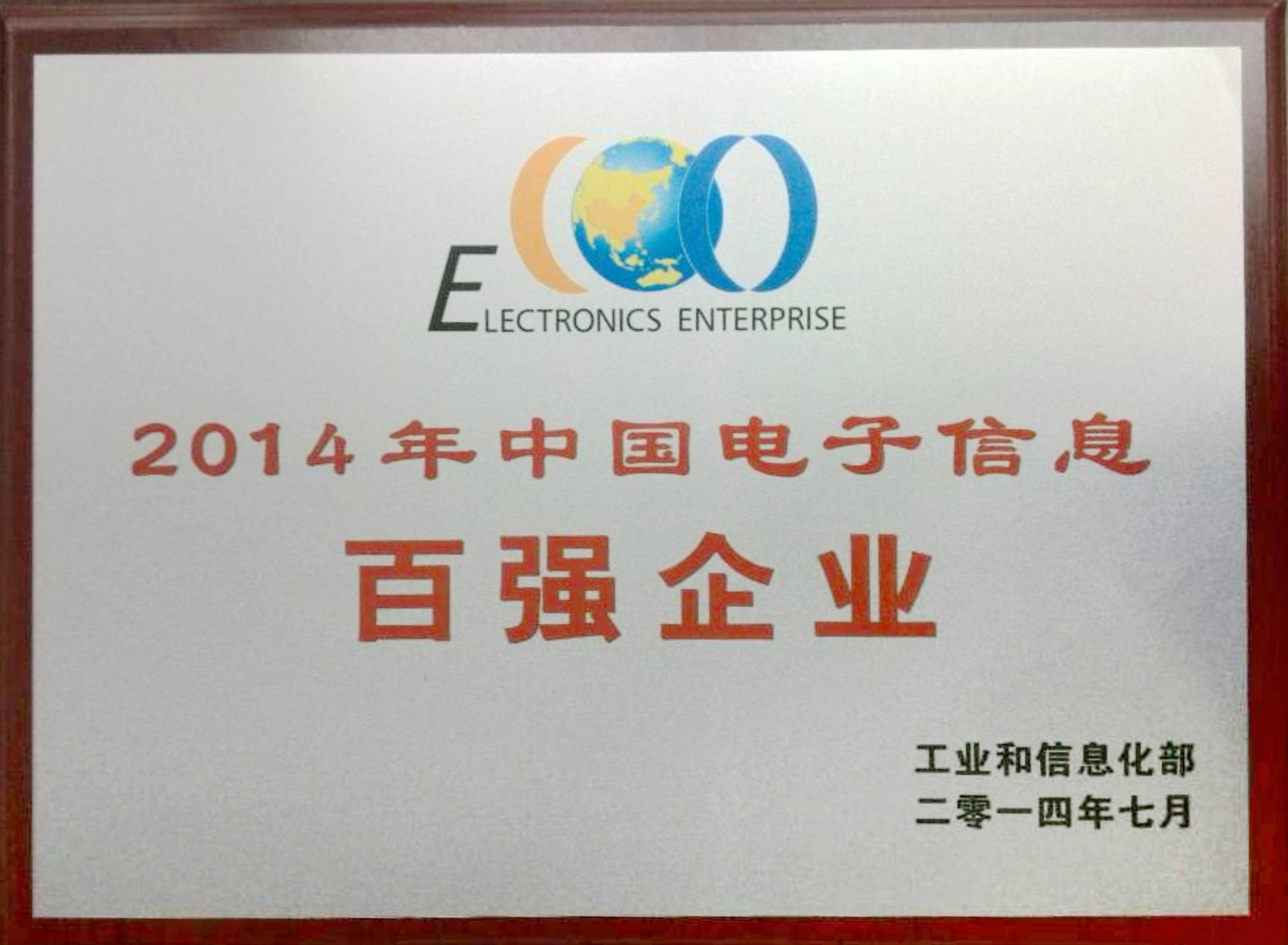 日前,国家工业和信息化部发布了2014年度(第28届)中国电子信息百强企业名录,我司成功入选,自2010年起,我司已连续五年蝉联中国电子信息百强企业榜单。