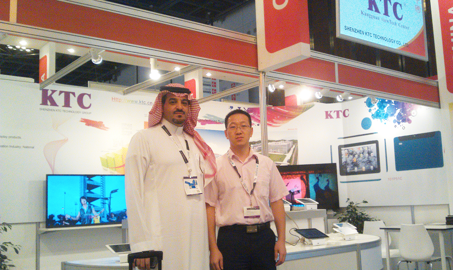 我司一向重视中东大市场,迪拜展也理所应当的全力以赴,我司营销处携旗下最新研发的电视机型与平板电脑一一亮相展会。我司电视机产品多年来以其优良品质在中东早已享有盛誉,此次展会我司所展出的主流42寸及以上大尺寸电视产品,外观时尚,材质精良,众多老顾客对其青睐有加,同时也带动新客户络绎光临。在平板电脑上,我司着重展出热销的8寸平板电脑搭配了十余个系列方案,包括业内人士极力推荐的800P31C MTK8127款及最新研发平板新品,各尺寸平板电脑亦配备不同方案产品亮相展会,为展会增色不少。