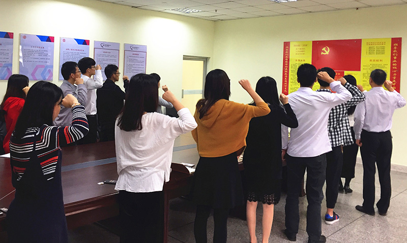 会上,公司党支部书记吴崇轶同志给所有党员同志重新发放新党徽,带领大家进一步学习党章、党规,并就“十九大”对党章的修改内容做了阅读研讨,党员同志们积极探讨党章修改的精髓及意义。