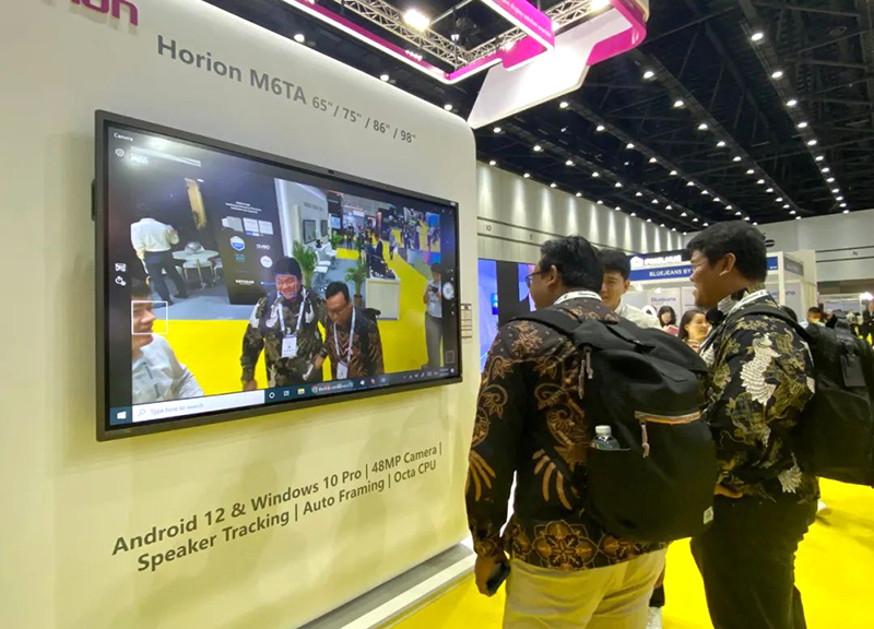 展位上,前来咨询和洽谈的客户络绎不绝。其中,皓丽创新性的视听产品和解决方案吸引了众多业内人士的关注,包括135" LED巨幕产品为核心的大型会议协同场景解决方案、M系列的会议平板M6TA为核心的Horion IFP智慧解决方案、以及K系列的Horion智慧教室解决方案,皓丽直播机等。皓丽工作人员细致地向客户介绍产品与服务,进行深入交流和探讨,了解客户需求,及时提供意见,为未来的合作建立坚实基础。
