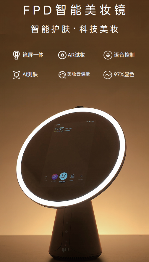 “AI+”应用为创新类显示产品给用户带来了更加智能化、个性化的体验。如智能美妆镜与移动智慧屏,前者通过AI妆容模拟与AI语音控制为客户带来一体式美妆综合体验;后者通过AI语音助手随时随地唤醒,解放用户双手,增强人机交互。