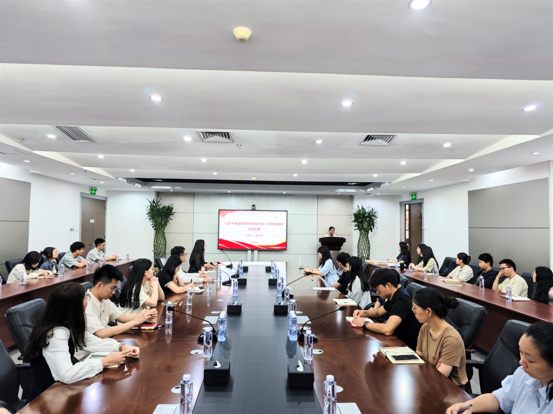 罗永华同志向新当选的党委班子成员表示热烈的祝贺,并结合此次会议,为全体党员讲授《以实干担当锲而不舍落实中央八项规定精神》党课。罗永华同志从深刻领悟实施中央八项规定的重大意义、准确把握中央八项规定精神的内在涵义、以实干担当锲而不舍落实中央八项规定精神等三个方面进行细致讲解,与会党员对学习体会进行了分享交流。
