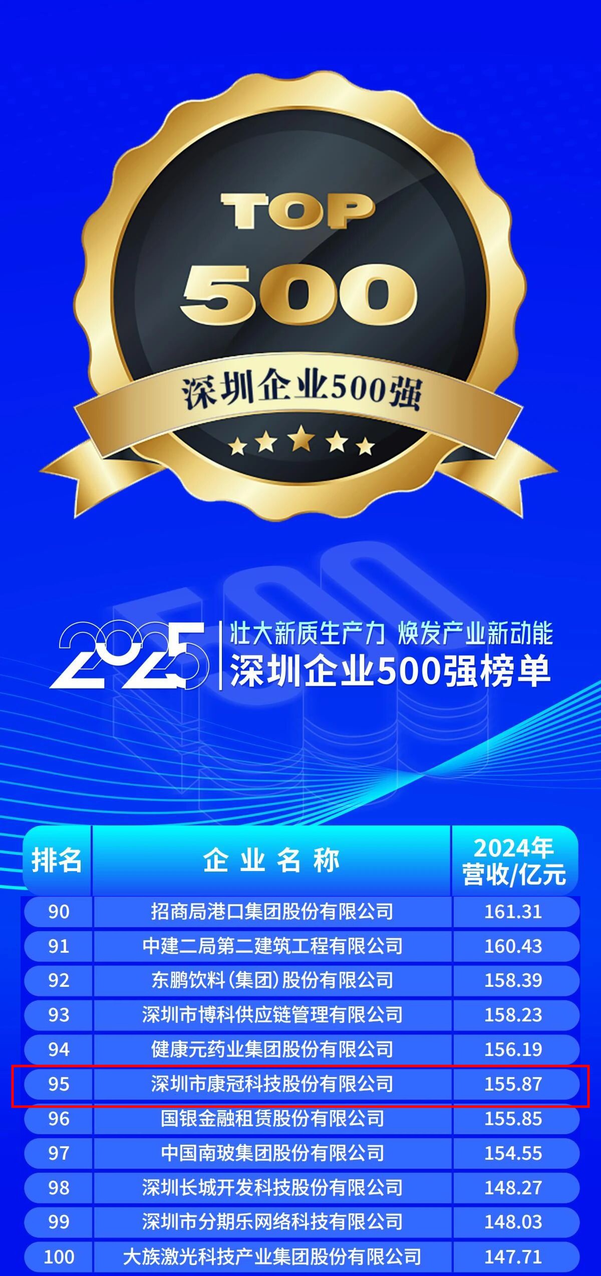 10月28日,深圳市企业联合会、深圳市企业家协会正式发布“2025深圳企业500强榜单”及《2025深圳500强企业发展报告》。MK体育·(国际)官方网站 - mksport(简称:mk体育)位列“2025深圳企业500强榜单”第95位;在细分榜单中,位列“制造业企业TOP100榜单”第33位;“国际化发展TOP100榜单”第92位。