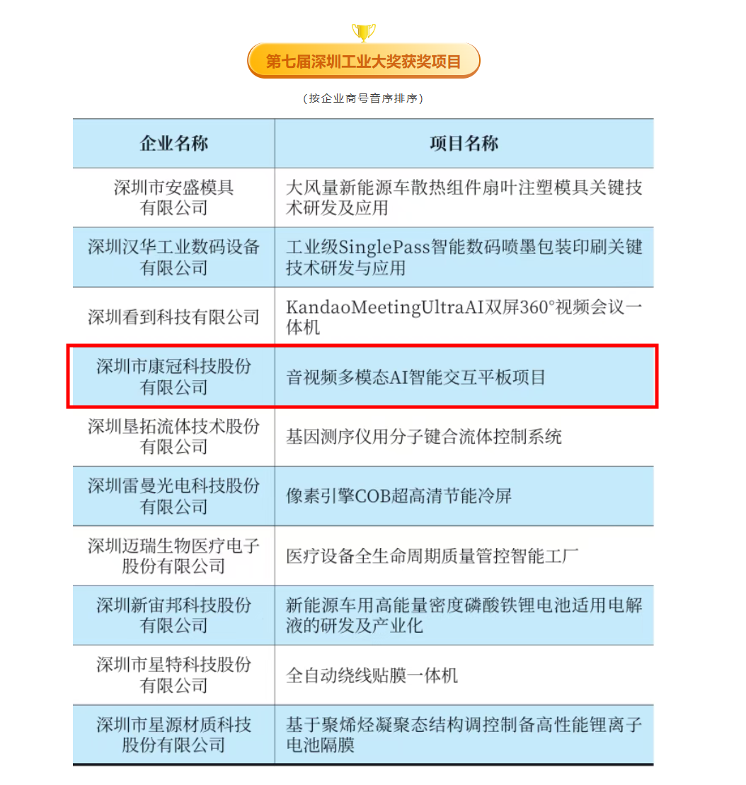 11月12日下午,第十四届“五洲工业发展论坛”暨首届深圳企业转型升级大会隆重举行。现场重磅发布第七届“深圳工业大奖”,mk体育公司获“深圳工业大奖”—企业奖,董事长凌斌获“深圳工业大奖”—工业家奖,《音视频多模态AI智能交互平板项目》获“深圳工业大奖”—项目奖。