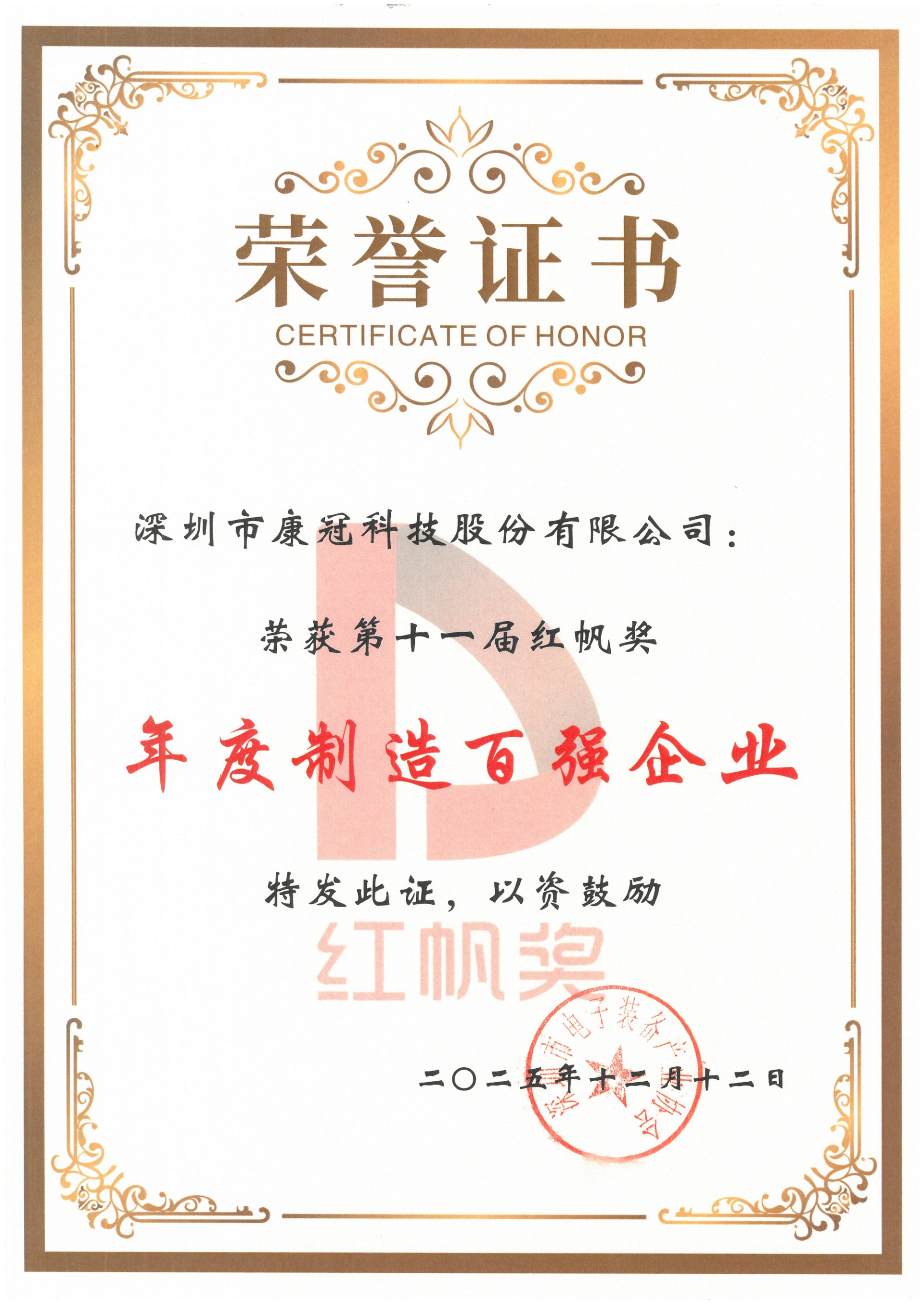 12月12日,2025深圳智造大会暨第十一届“红帆奖”颁奖盛典在深圳国际会展中心隆重启幕。mk体育凭借在智能制造领域的深厚积淀、技术创新实力及全球化市场表现,荣获第十一届红帆奖“年度制造百强企业”称号。