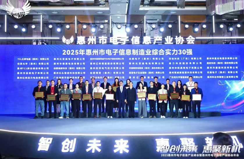 12月18日,以“智创未来 惠聚新机”为主题的2025惠州市电子信息产业峰会暨惠州市电子信息产业协会年会在惠州富力万丽酒店盛大启幕。惠州mk体育被授予“2025年惠州市电子信息制造业综合实力30强企业”。